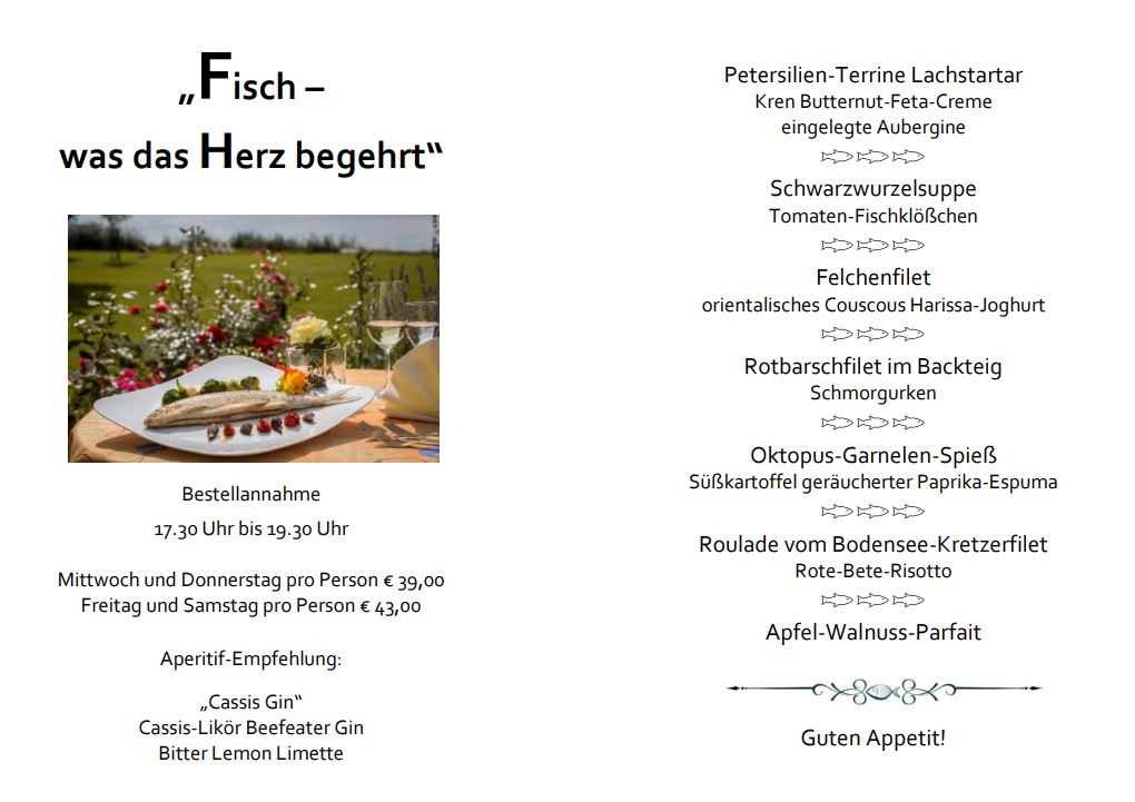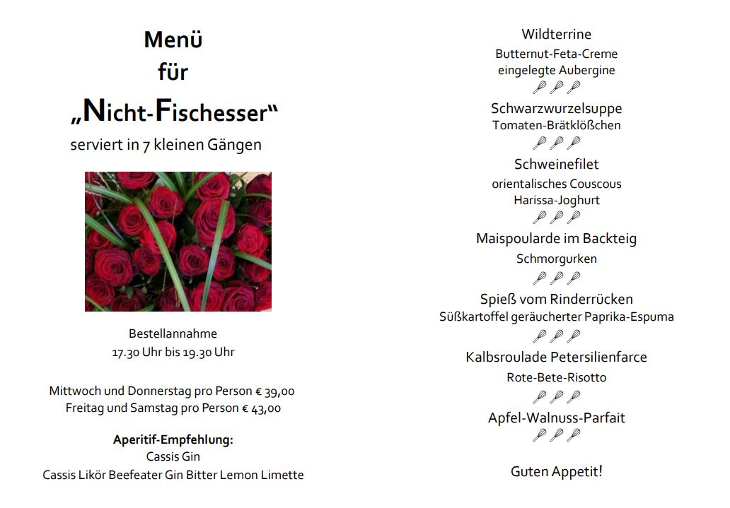 Wir bieten Ihnen auch gerne auf Vorbestellung wieder unser Menü “für Nicht-Fischesser” an.
