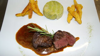 Mittags bieten wir Ihnen wieder das “Fischmenü light” in fünf kleinen Gängen, und das Fleischmenü in fünf Gängen an.