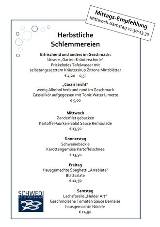 verwöhnen wir Sie mit wechselnden spätsommerlich-kleineren Gerichten.